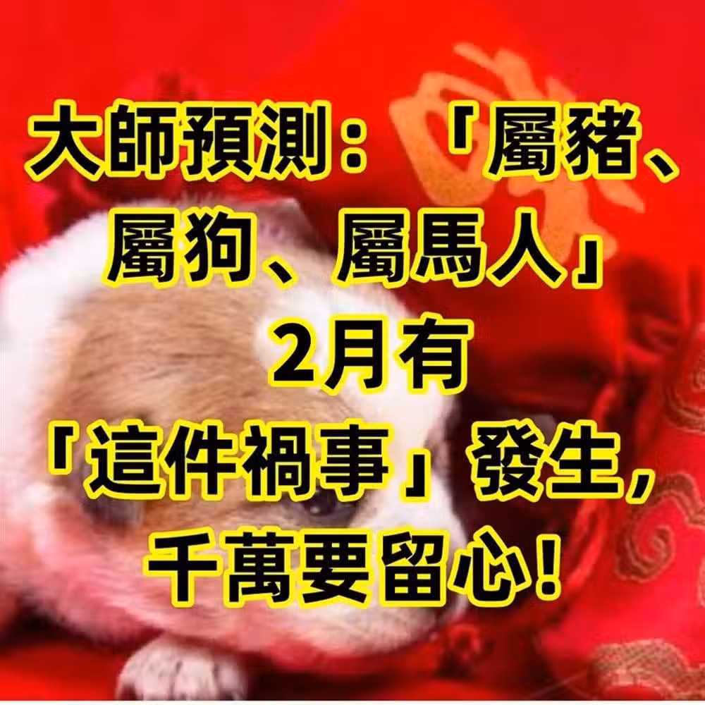 大師預測:生肖「屬豬、屬狗、屬馬人」2月有「這件禍事」發生,千萬要留心!