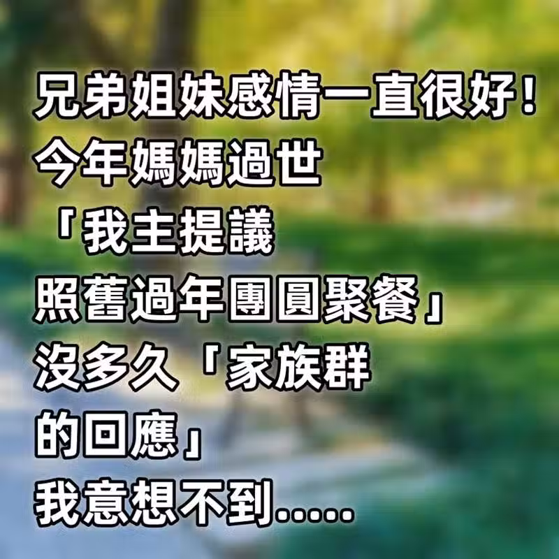 兄弟姐妹感情一直很好!今年媽媽過世「我主動提議照舊過年團圓聚餐」 沒多久「家族群的回應」我意想不到