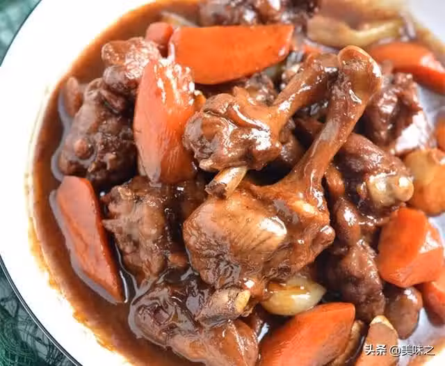 鴨腿2隻、胡蘿蔔1根、大蒜半頭、大蔥1棵、姜1塊、油少許、料酒20克、生抽20克、老抽10克、鹽2克、白糖6克、熱水適量。