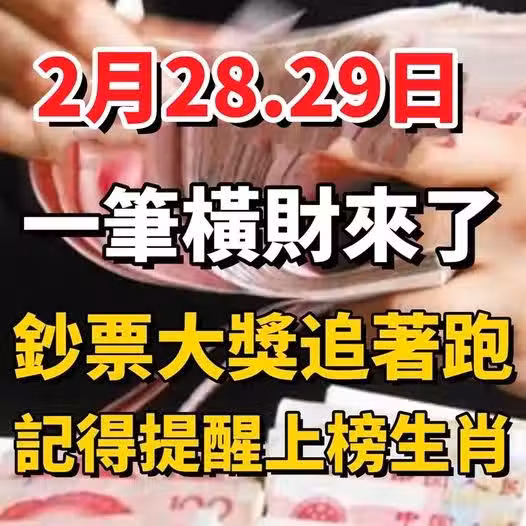 2月28.29日:一筆橫財來了,鈔票大獎追著跑!記得提醒上榜生肖!