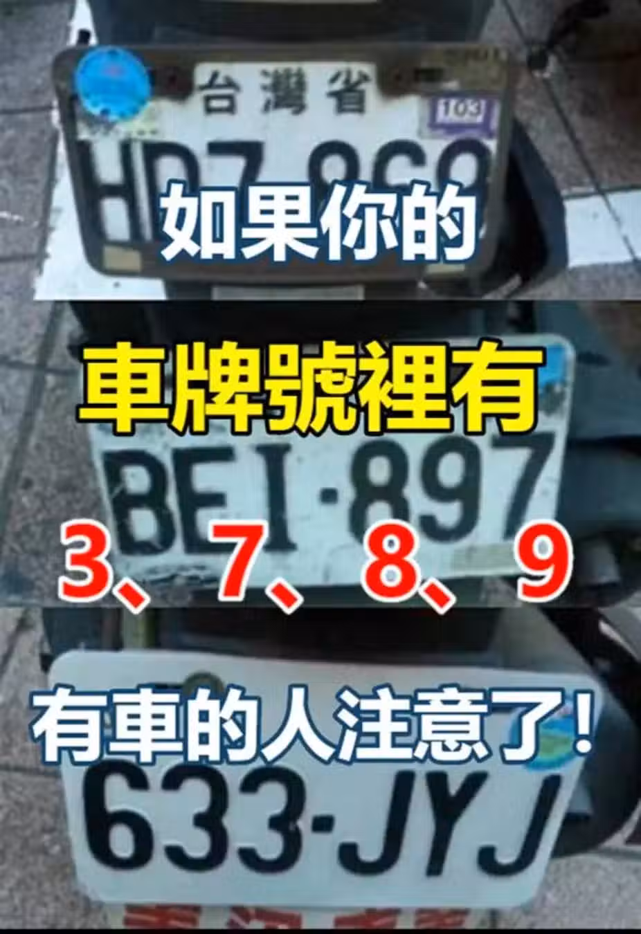 如果你的「車牌號裡有3、7、8、9」家裡有車的人注意了,現在知道還不晚