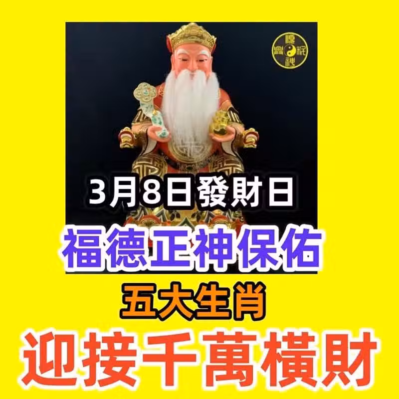 3月8日發財日,福德正神保佑,迎接千萬橫財的生肖
