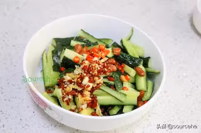 【sourcehe溫馨小貼士】1.不管黃瓜還是青瓜,都要挑選新鮮的黃瓜涼拌才好吃。2.不吃辣椒的可以不放辣椒,喜歡吃辣椒的要放干辣椒更入味。3.放生抽比放鹽好吃,另外醋我用的是蘋果醋,涼拌出來的黃瓜也特別香酸甜可口。還可以加2粒冰糖,會更美味哦。