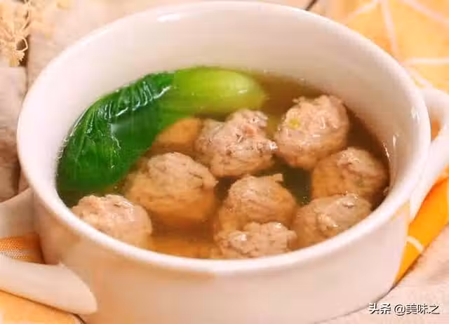 6、鍋中取適量原煮丸子的水燒開,倒入一勺蚝油少許鹽,放入丸子放入青菜煮熟即可上碗。