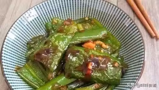 食材:青尖椒,油,醋,醬油,糖,鹽