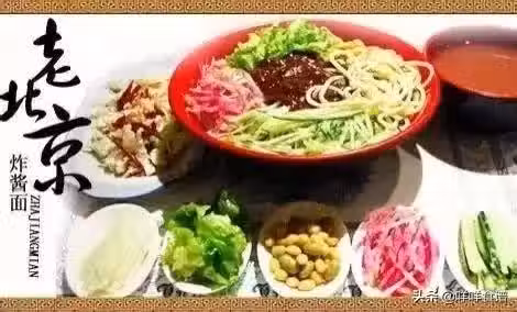 4、把綠豆芽和黃瓜絲夾到麵條上再盛入1勺炒好的炸醬大蒜末,再倒少許醋拌勻即可。