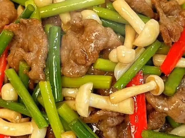 準備食材:白玉菇,蒜苔,瘦肉,小米辣,薑絲,蒜末。