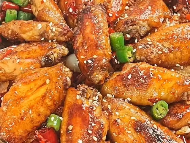 準備食材:雞中翅,蔥姜蒜,花椒,干辣椒,洋蔥,白芝麻。