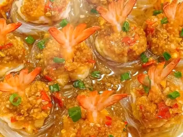 準備食材:粉絲,蝦仁,蒜末,小米辣,蔥花。