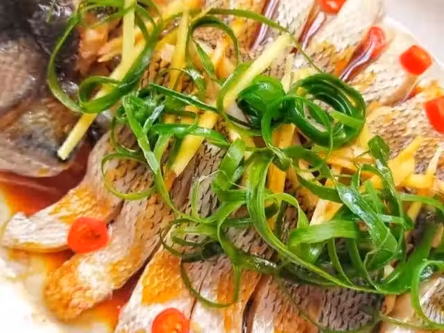 準備食材:鱸魚,蔥絲,薑絲,小米辣。