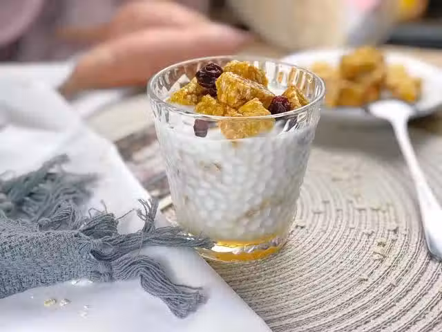 紅薯200克、即食燕麥片50克、酸奶100毫升,蜂蜜少許、蔓越莓干少許