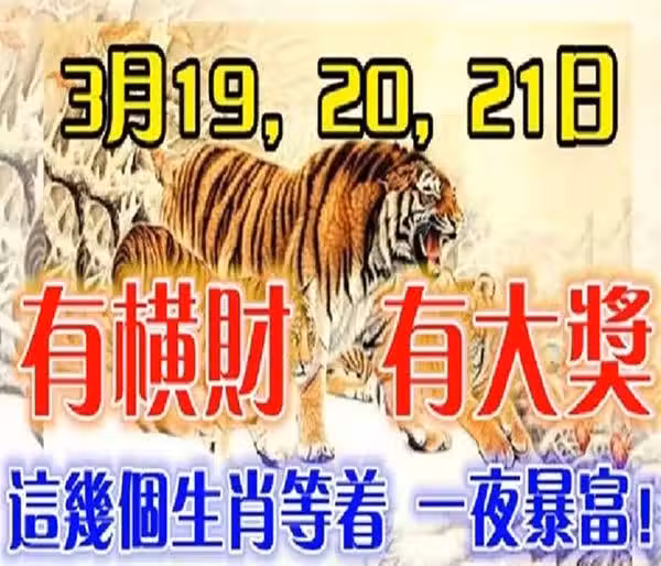 3月19,20,21日有橫財發,有大獎,這幾個生肖等著一夜暴富