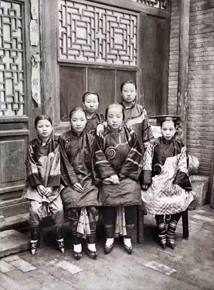 十九世紀中後期,相機被引入清王朝。在外國侵略者的不斷欺壓下,越來越多的外國傳教士來到中國,在中國,他們進行了大量的拍攝,這些照片反映了晚清百姓的真實面貌,也為我們了解那一段歷史提供了珍貴的材料,圖為清朝末年青年女子的合照,全都是三寸金蓮。