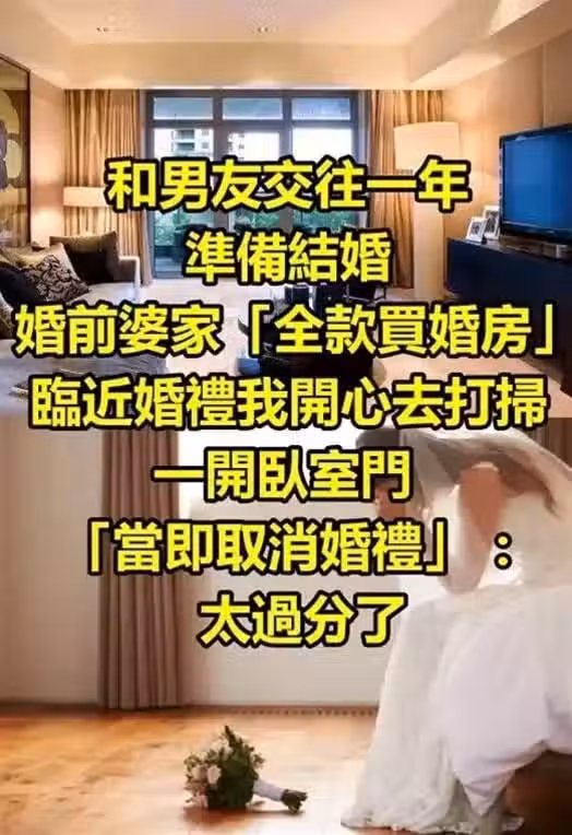 和男友交往一年準備結婚,婚前婆家「全款買婚房」!臨近婚禮我開心去打掃,一開臥室門「當即取消婚禮」 :太過分了~