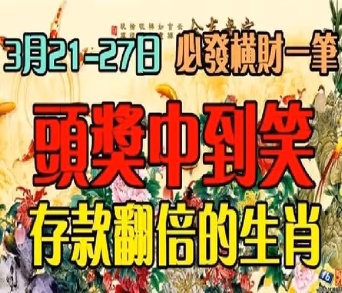 3月21到27日必發橫財一筆,頭獎中到笑,存款翻倍的生肖快來接