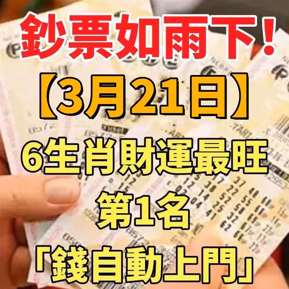 鈔票如雨下【3月21日】6生肖財運最旺,第1名「錢自動上門」