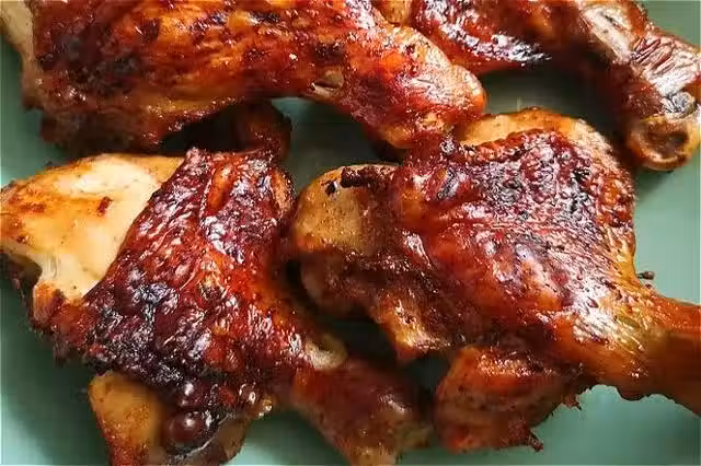 所需材料:雞腿4隻,生抽3勺,薑絲適量,辣椒粉適量,孜然粉適量,蒜泥適量,橄欖油少許,老抽一丟丟。