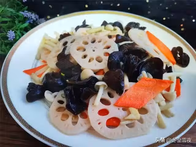 今天分享一道素菜小炒,別看它是一道素菜小炒,可是營養卻很豐富,這道菜肴用蓮藕,黑木耳和海鮮菇,胡蘿蔔一起搭配製作而成,蓮藕就是秋冬季時令滋補佳品,最養人,蓮藕生食,有清熱涼血作用。熟吃更能清熱潤肺,滋陰養血。