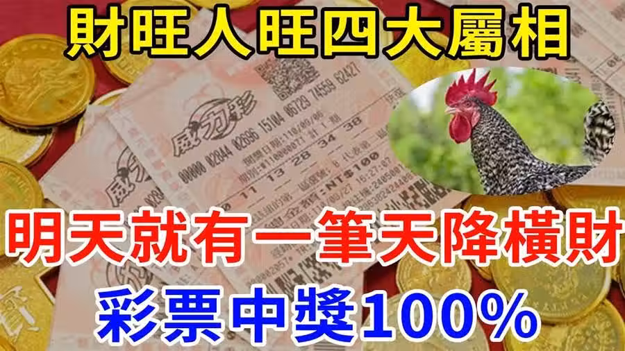 恭喜,明天起一筆橫財從天降,彩票中獎100%,財富如雨下,財旺人旺四屬相