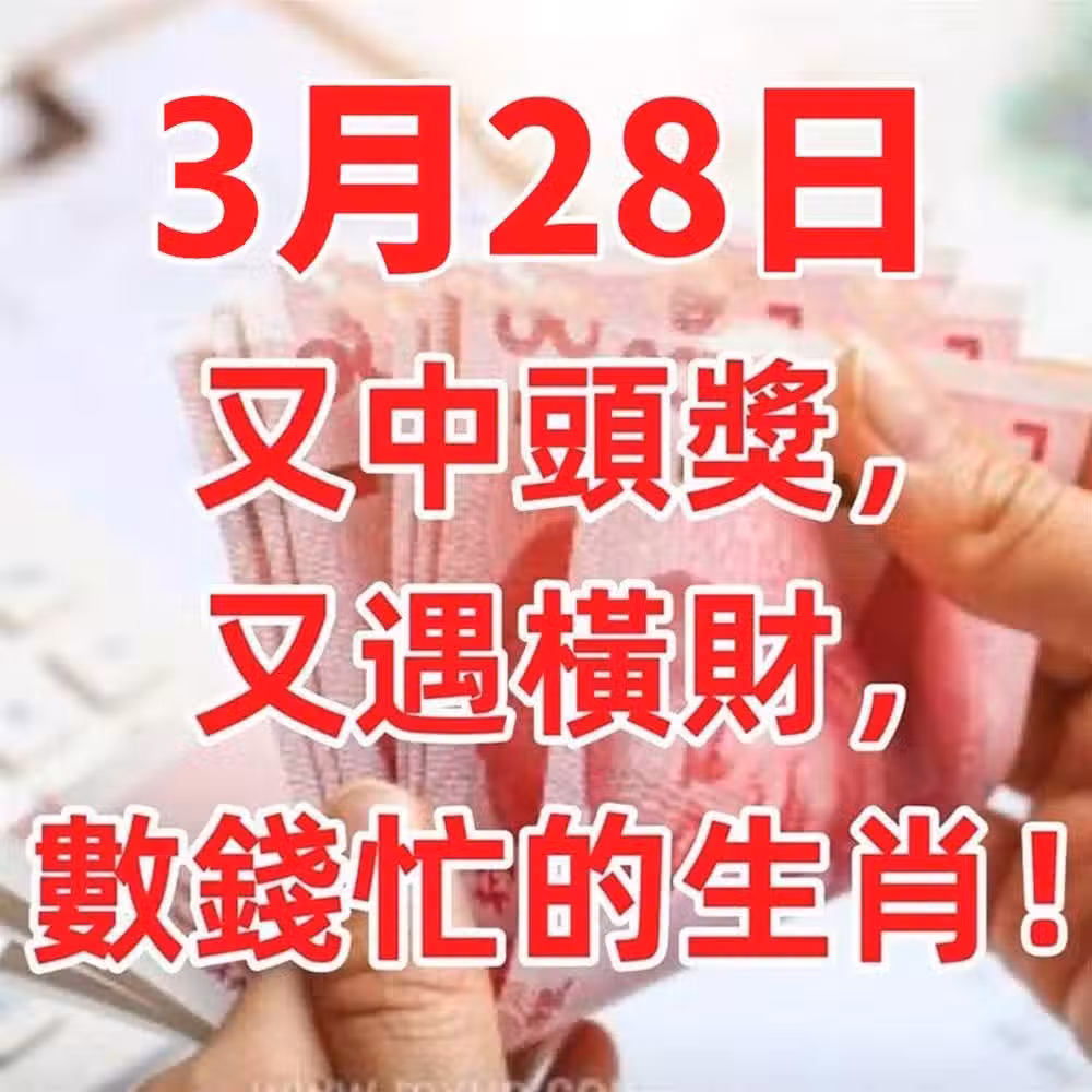 3月28日又中頭獎,又遇橫財,數錢忙的生肖!