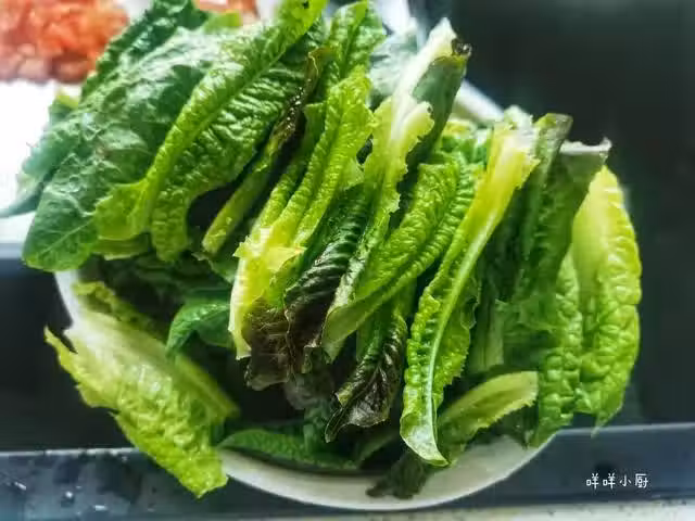 2、鍋中放入適量的豬油和食用油,加熱至融化,炒出來的萵苣葉香不香這一塊豬油起了不小的作用。豬油增加滑潤的口感,改善了纖維素的粗糙感。