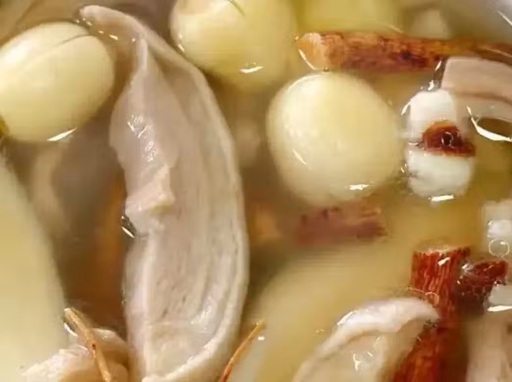 3、在一個湯鍋中,將處理好的豬肚、蓮子、芡實、淮山和五指毛桃一同放入,加入足夠的清水和幾片薑片。然後,開啟爐火,讓湯料在鍋中慢慢燉煮一個小時,讓食材的營養和味道充分融入湯中。