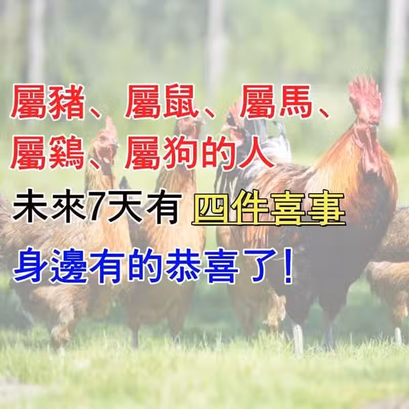 【屬豬、屬鼠、屬馬、屬雞、屬狗的人】未來7天有「四件喜事」身邊有的恭喜了!