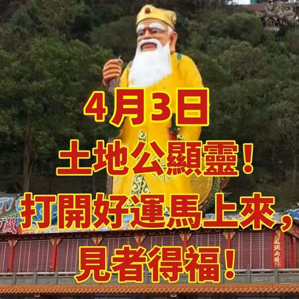 4月3日,土地公顯靈!打開好運馬上來,見者得福!4月身體安康發大財!真的靈!