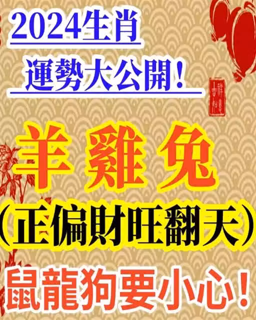 2024龍年生肖運勢大公開!羊雞兔正財、偏財都旺翻天,1生肖小心金錢陷阱 各生肖的2024年整體運表現如何?
