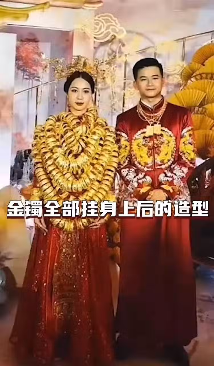 娘家財力超猛!新娘結婚「全身掛滿金手鐲」豪奢畫面瘋傳...金飾下「真面目」震撼曝光