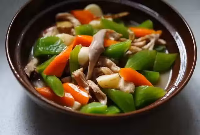 食材:萵筍、豬肚、胡蘿蔔、薑片、花椒、大蔥、黃酒、白鬍椒粉、澱粉