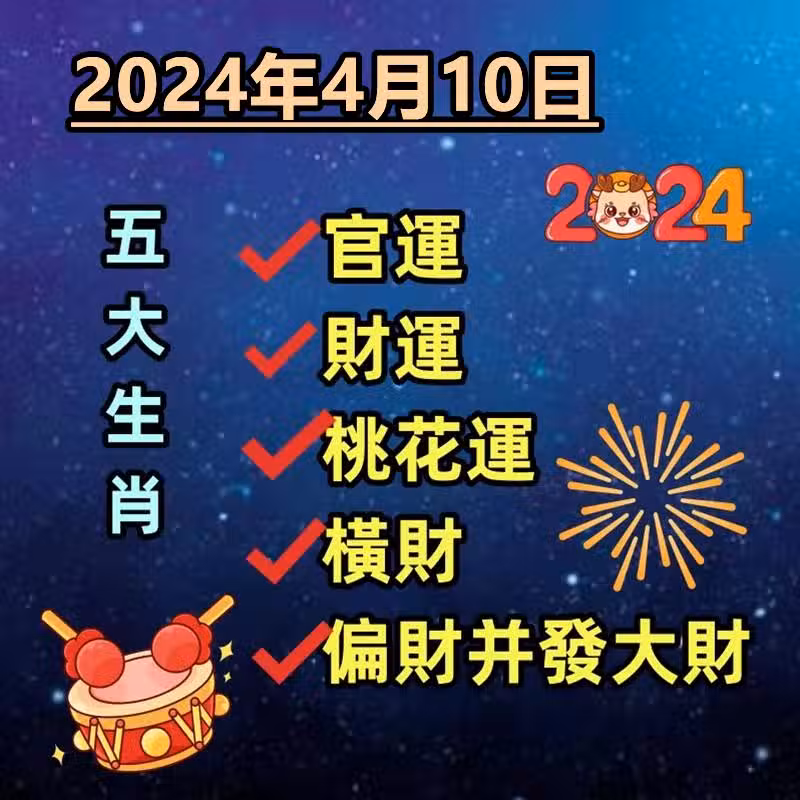 4月10日:官運 財運 桃花運 橫財偏財並發大財的五生肖