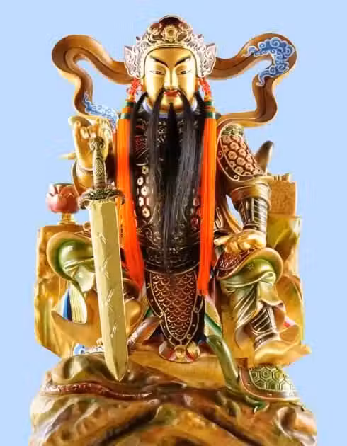 玄天上帝,即真武大帝,或真武、北極真君、元天上帝。真武是古代漢族神話傳說中的北方之神玄武,宋時避諱改玄為真,稱真武帝,宋朝道教的北方上帝,明朝天子的保護神。據傳,他是盤古之子,於玉帝退位後任第三任天帝,生有炎黃二帝。曾降世為伏羲,為龍身,中華之祖龍。