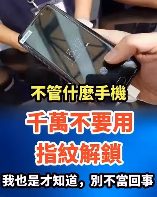 不管什麼手機,千萬不要用指紋解鎖,我也是才知道,別不當回事