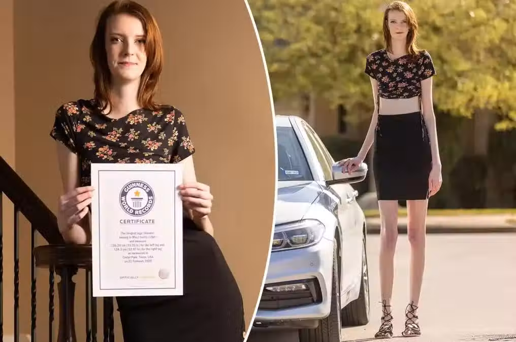這位22歲的姑娘,身高2.08米,她的腿長1.35米。她在青少年時期就獲得過金氏世界紀錄認證,被確定為世界上腿最長的青少年。成年之後,她再次獲得金氏世界紀錄認證,被確定為世界上腿最長的女性。