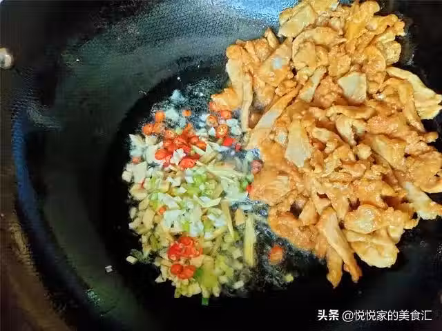 多加這一步也是相當的重要,這是做雞胸肉好吃的另外一個關鍵點,倒入蔥姜蒜末炒香