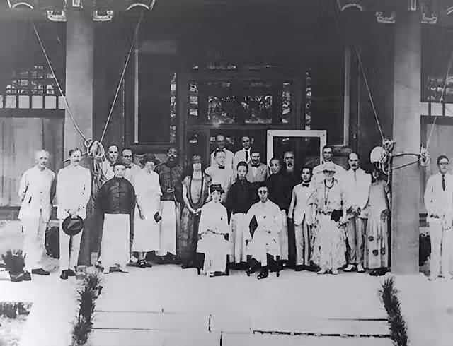 溥儀和婉容跟外賓合影