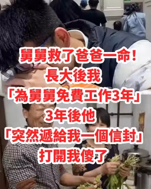 舅舅救了爸爸一命!長大後我「為舅舅免費工作3年」 3年後他「突然遞給我一個信封」打開我傻了