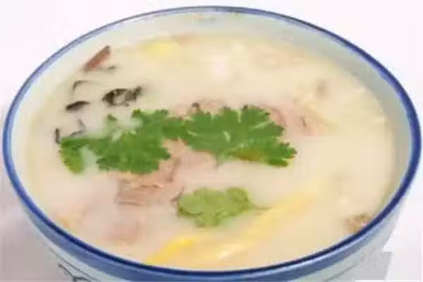 2、起油鍋,用薑絲爆羊肉,清水適量,煮沸後放蒜粒,蝦肉粒,煮20分鐘,放蔥花,調味,拌入少許生粉水命中成稀糊狀即可食用。