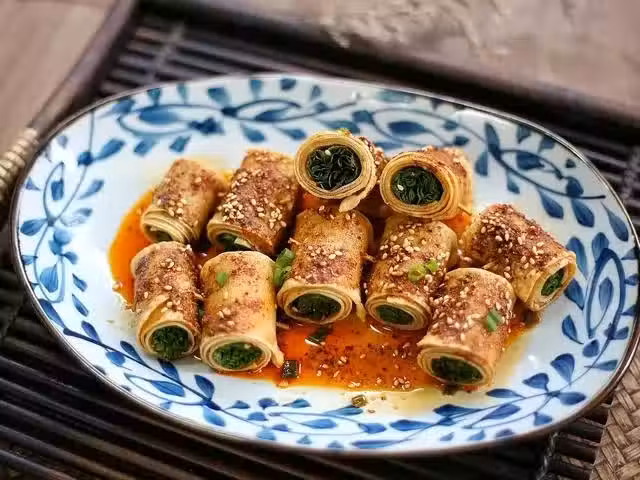 主要材料:韭菜一把、豆皮1張、蔥花適量