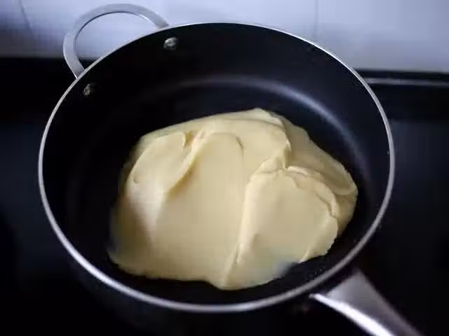 9、炒好的綠豆沙晾至不燙手後,用保鮮膜包裹住,送入冰箱冷藏保存。