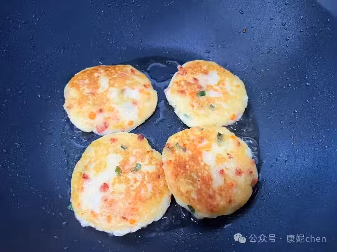 第八步:土豆餅一面煎金黃後翻面繼續煎,兩面煎金黃即可。煎好的土豆餅盛出,放在廚房紙上吸一下油,這樣吃起來更健康。