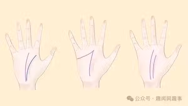 ◆ 婚姻線「尾端往上翹」:代表缺乏結婚的意願,傾向於單身。