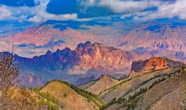 景點特色和亮點:公園內植被豐富,春季時節草木逐漸甦醒,花海絢爛,觀賞到高原特有的各種花卉如杏花、杜鵑花等。丹霞地貌、峽谷庫區以及藏族風情等景觀元素也是公園的亮點。