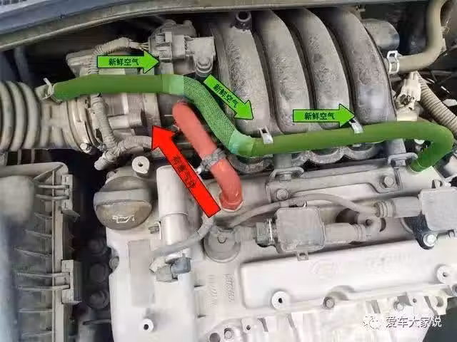 接在節氣門前面,發動機熄火時有一部分曲軸箱蒸汽會反流到節氣門前面,廢氣中的機油蒸汽最終會附著在節氣門前面形成一層油膜,發動機工作時這層油膜吸附了空氣中的灰塵,最終形成一層油泥,也就是我們常說的節氣門積碳。
