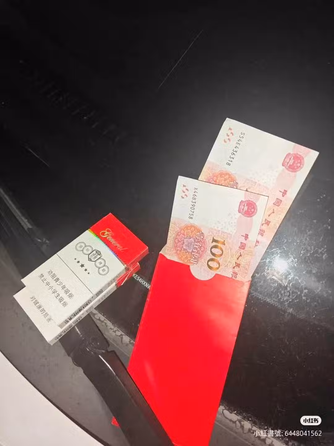 網友們看了也紛紛爆笑並打趣笑回:「什麼人啊!道德綁...嫁進好人家啊!男才女貌早生貴子~」、「只要錢到位、恭喜老爺賀喜夫人呀」、「憑什麼...這麼客氣」、「看第一張圖:你憑什麼;滑到第二張圖:真是太客氣了,第二天來親戚繼續停我這吧」、「萬一是冥婚紅包怎麼辦」、「我覺得用紅紙寫比較好」、「下次結婚歡迎再停我這啊」、「要是菸跟紅包被路過人拿走,那就冤了」、「回樓上,所以用紙蓋上了,挺聰明」、「這人太上道了」。