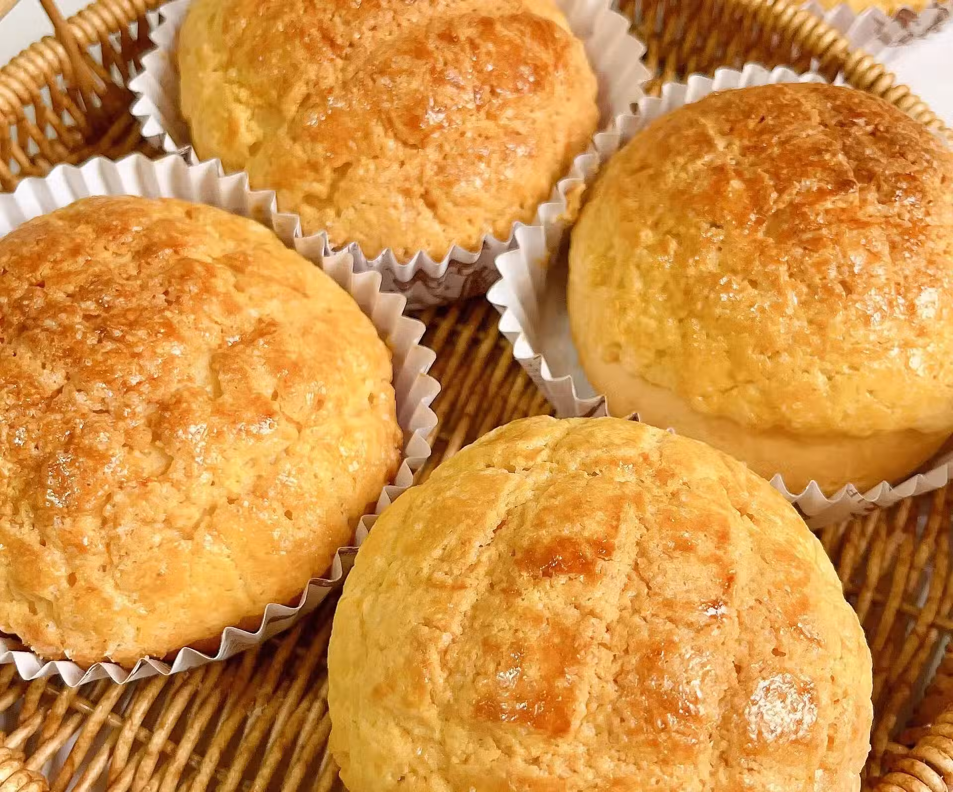 金黃色的酥皮,輕輕一掰,碎屑便如秋葉般飄落,露出裡面鬆軟的麵糰。一口咬下,外酥內軟,香甜四溢,這不就是我們心心念念的菠蘿包嗎?
