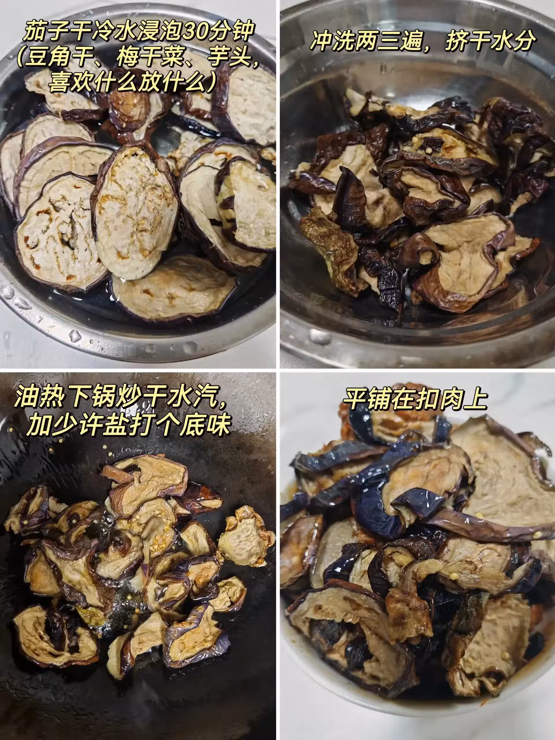 茄子干蒸扣肉的家常做法,軟爛入味又解饞,好吃不膩,太下飯辣!