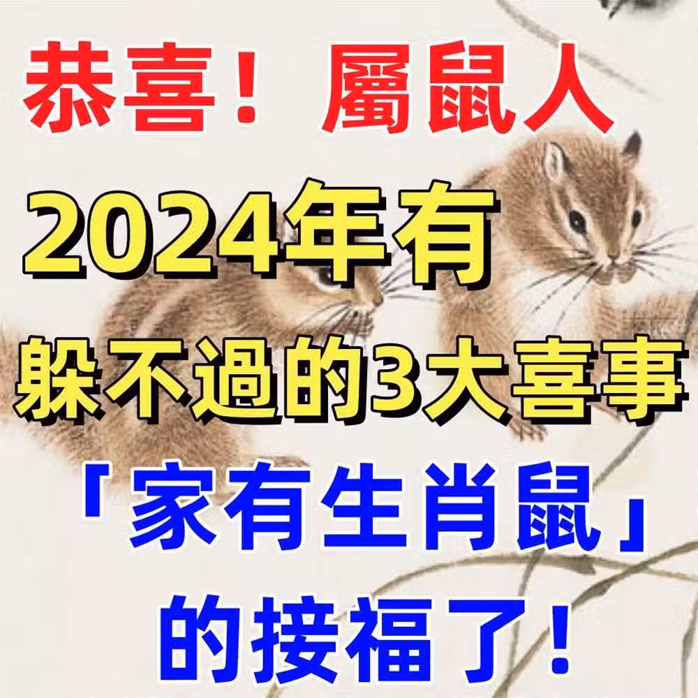 恭喜!屬鼠2024年有「躲不過的3大喜事」天降橫財擋不住「家有生肖鼠」的接福了