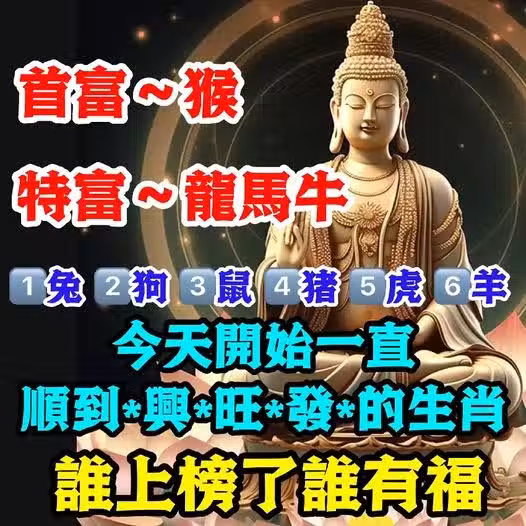 今天開始一直順到*興*旺*發*的生肖,誰上榜了誰就有福氣
